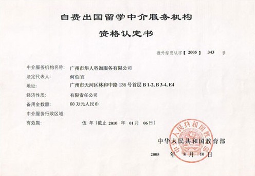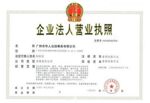 广州市华人出国事务有限公司成立于1990年,是经国家公安部(粤公境准字[2007]0002)、教育部(教外综资认字[2005]343号)、工商局(注册号440106000411718)首批核准发证的,专业从事公民因私出入境、移民出国和自费出国留学事务的中介服务机构。公司长期从事美国、加拿大、澳大利亚等国家的各类移民、非移民,如亲属移民、投资移民、技术移民、劳工移民、婚姻移民以及出国留学、探亲访友、商务考察、短期商务等签证申办专业服务。公司立足于客户的未来,着眼于客户的现实,专注于挖掘客户最大的潜力,以创造性的思维和专业的规划设计帮助客户将梦想变为现实,将不可能变为可能!