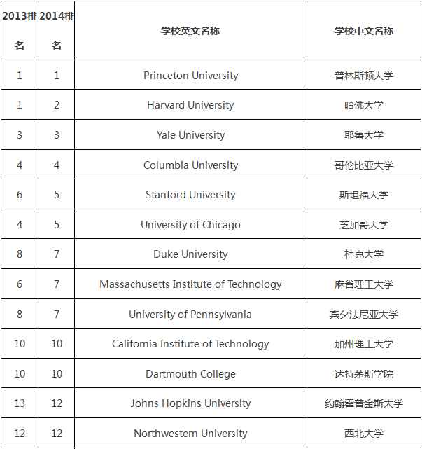 2014USNews美国大学综合排名出炉